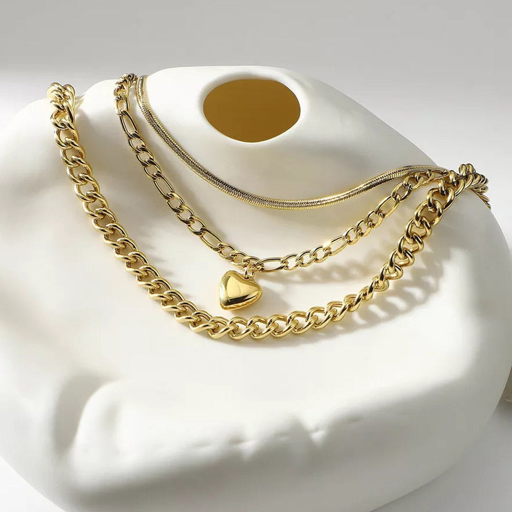 This necklace is made of stainless steel with added 18K PVD gold plating. This means that the color will last for quite a long time. Does not fade and also does not scratch.