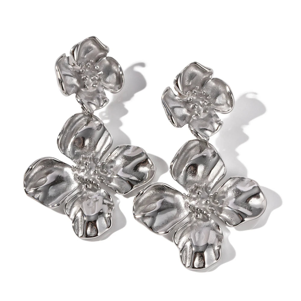 Bask in the radiant beauty of the Buttercup Blossom Earrings. These exquisite double drop earrings feature two intricate Buttercup flower designs, meticulously crafted from hypoallergenic and nickel-free stainless steel, plated with luxurious 18k gold using PVD technology for a lasting and brilliant shine.