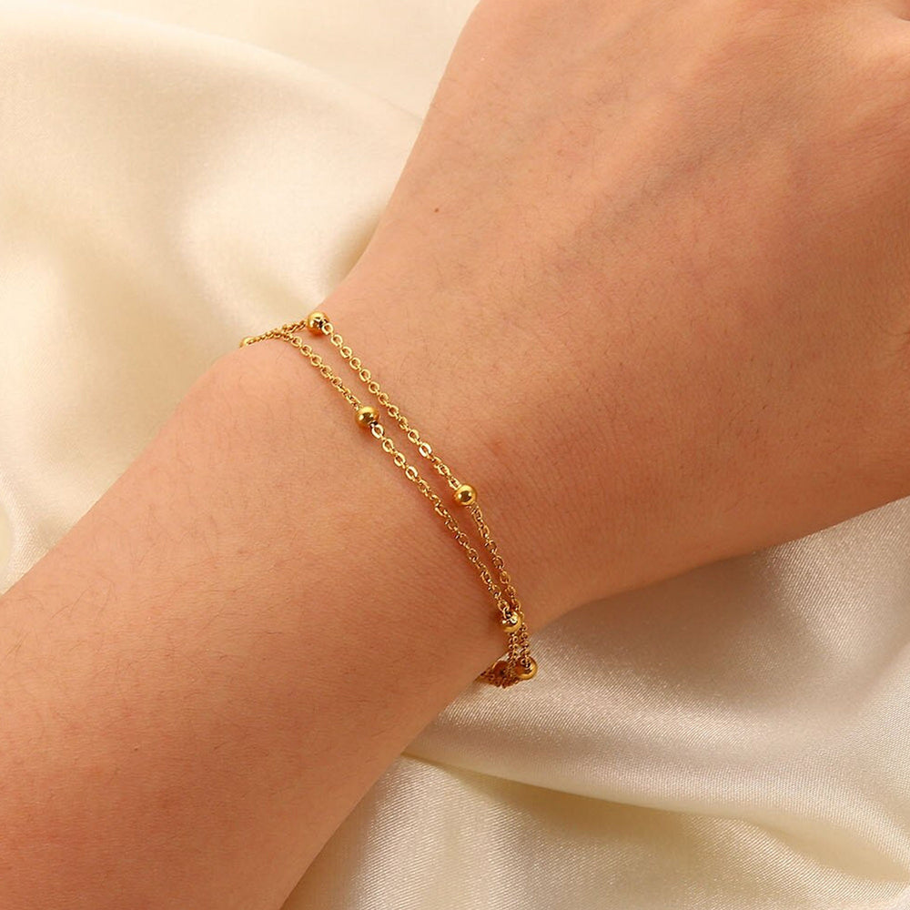 - 18K Gold Plated Stainless Steel Double Satellite Chain