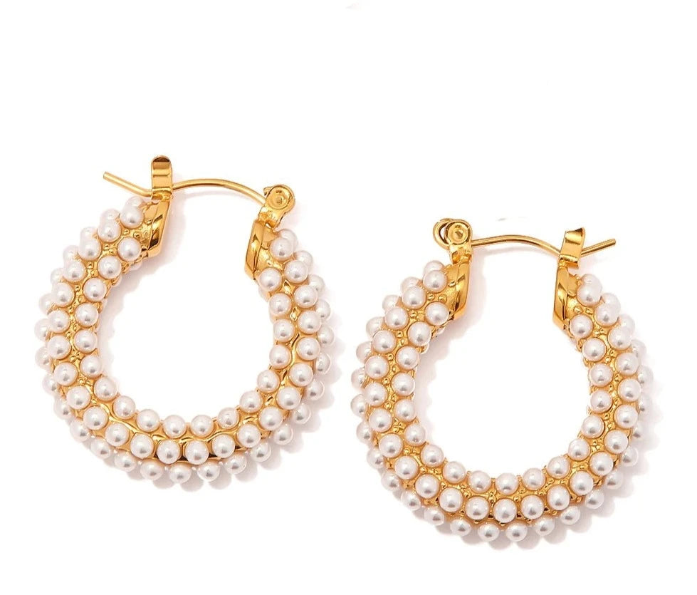 Elevate your elegance with the Emily Earrings, featuring exquisite imitation pearls set in 18k PVD gold plated stainless steel. These round huggie earrings are designed to bring a touch of sophistication to any ensemble. Hypoallergenic and tarnish-resistant, the Emily Earrings are as comfortable as they are beautiful, ensuring a skin-friendly wear that lasts.