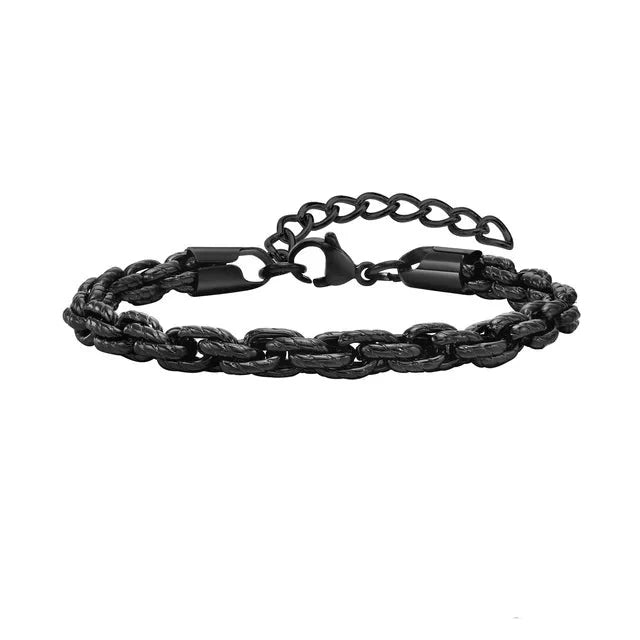 Unleash your inner rebel with our Rebel Bracelet . This edgy wristband features a unique twist-braided design, meticulously handcrafted from premium stainless steel. The bold chain links embody a perfect blend of punk attitude and rock 'n' roll spirit.
