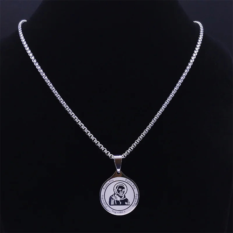Embrace faith and devotion with the Padre Pio Medallion. Crafted from durable stainless steel, this pendant showcases a detailed engraving of the beloved saint on a sleek, circular charm.