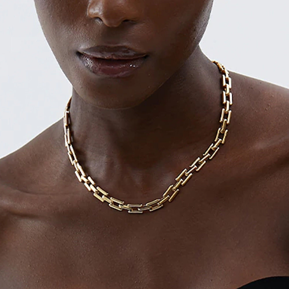 * 18k Gold Plated Stainless Steel (PVD) Square Link Necklace 17.5"