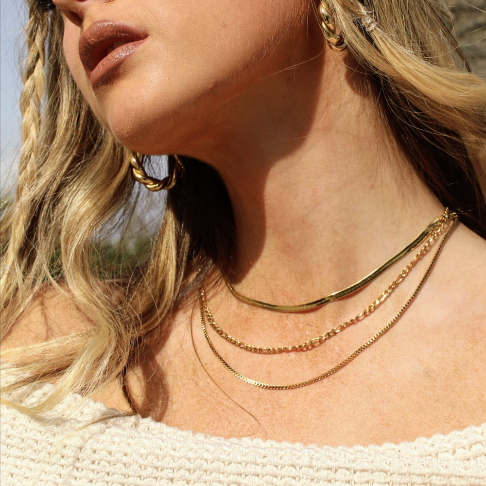 Handcrafted by Women, for Women. This stunning, triple-layered piece is designed to elevate your style with a touch of luxury and elegance. Each chain is plated with 18k gold, creating a lustrous and lasting shine that catches the eye immediately. No matter the occasion, whether it is dressed up or down, it's sure to complement any outfit with its timeless and trending look.