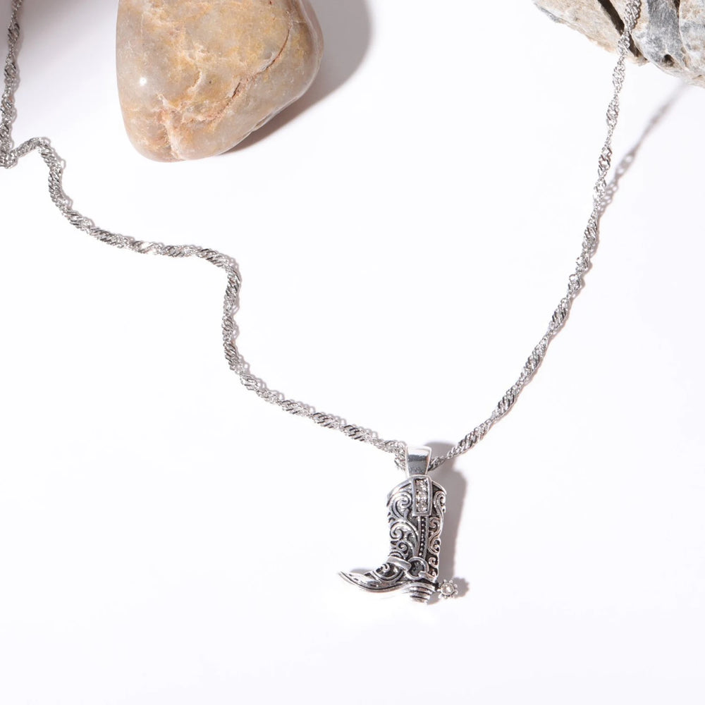 Channel your inner cowgirl spirit with the 'Walkin' Free' Necklace. This captivating piece features a unique cowboy boot pendant, meticulously crafted from high-quality stainless steel with a luxurious 18k gold or sleek silver finish.