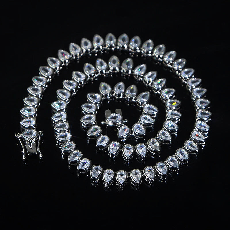 Indulge in sophistication with our Icy Cascade Tennis Necklace. Crafted with high quality CZ stones, this choker necklace showcases 5A tear drop shaped cubic zirconia for a timeless and elegant look. Enhance any outfit with this luxurious and exclusive piece.